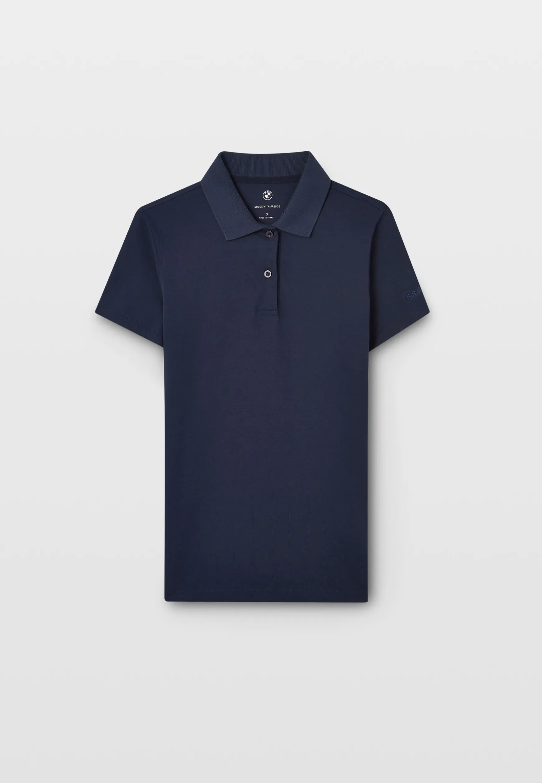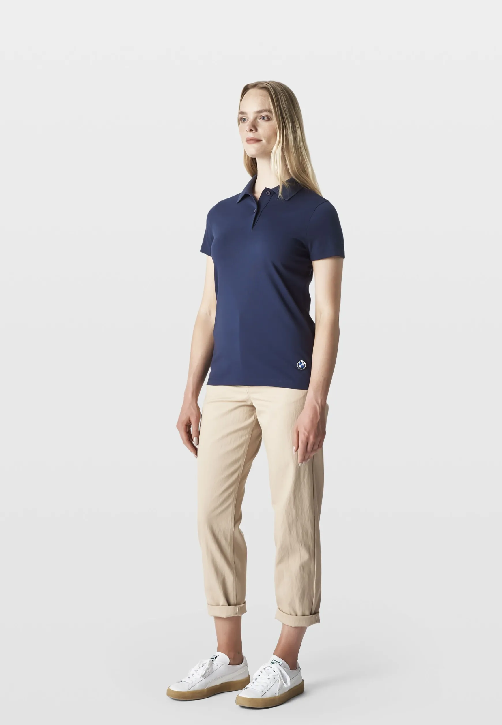 100% organic cottonWeight: 180gsmCasual fitSmall BMW logoRibbed collar2 button design